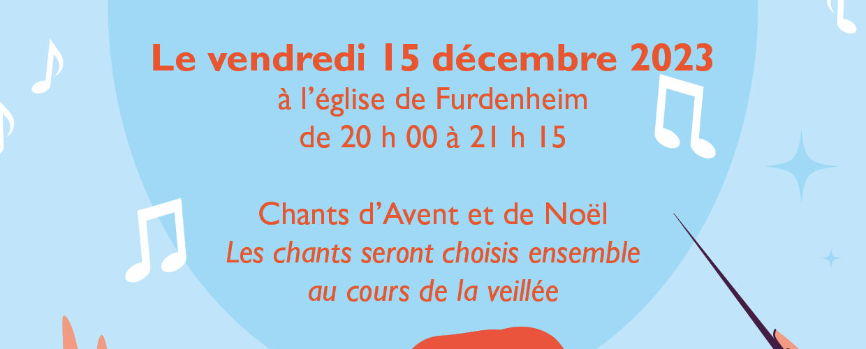 Le vendredi 15 décembre 2023 à 20h à l’église de Furdenheim, nous vous proposons une veillée de l’Avent en chants !