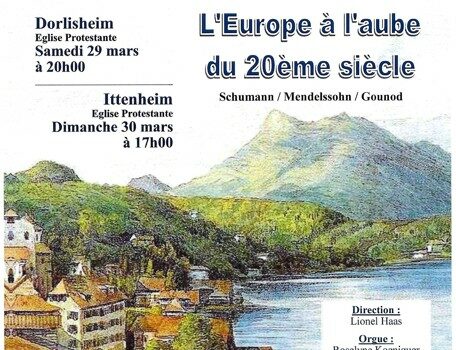Le 30 mars à 17h à l’église protestante d’Ittenheim, La Chorale vous propose son concert « L’Europe à l’aube du 20ᵉ siècle.Sous la direction de Lionel Haas et Roselyne Kœniguer, venez découvrir des œuvres de Schumann, Mendelssohn, Gounod…Entrée libre – Plateau