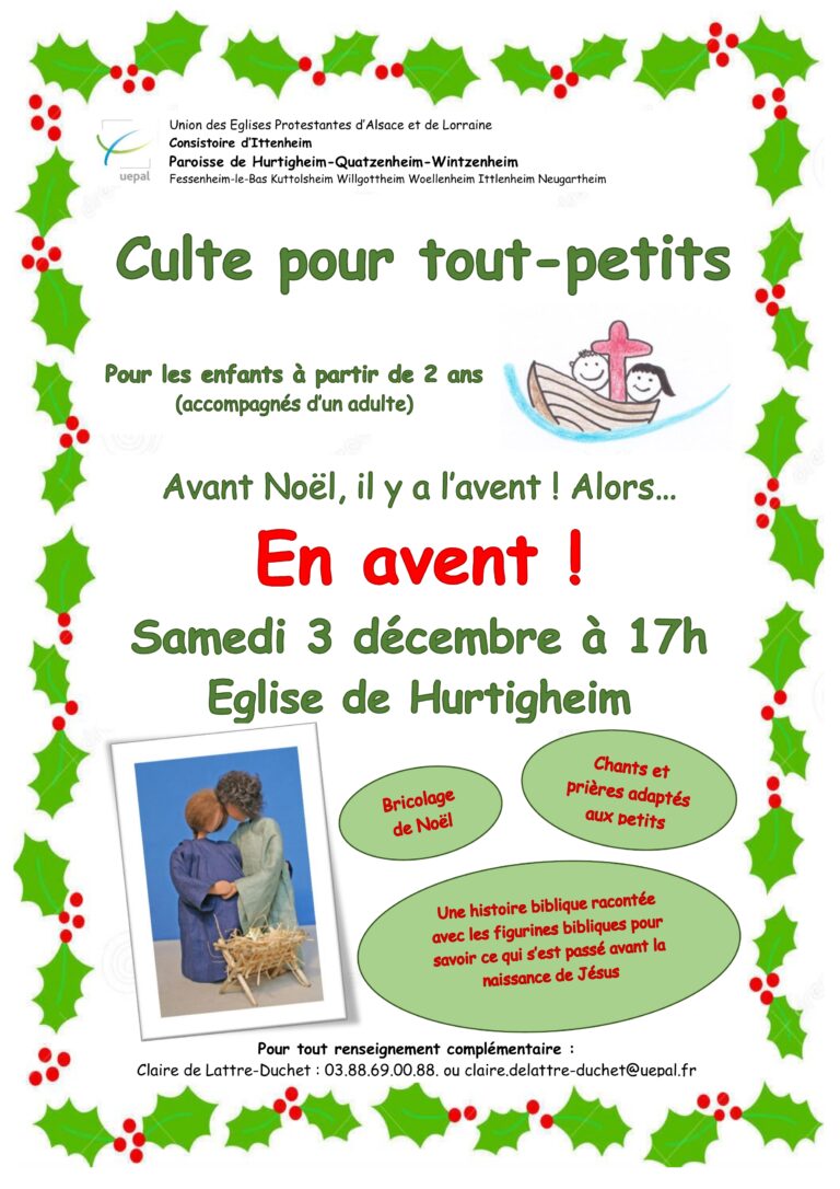 Le dimanche 18 décembre à 10h à Quatzenheim, les enfants de l’Ecole du dimanche vous invitent à participer au culte […]